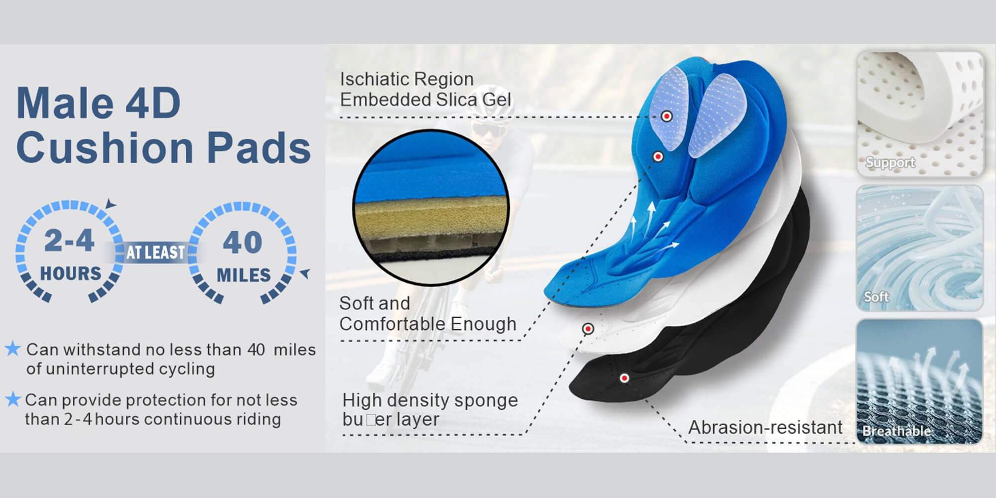 Built for beginners, short-distance riders, commuters, and casual cyclists, these bib shorts are designed for riders who cycle 1–2 times per week and usually ride 60–80 km per session. They are suitable for summer road riding, indoor trainer sessions, high-intensity interval work, commuting, city short rides, and travel cycling.